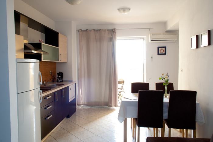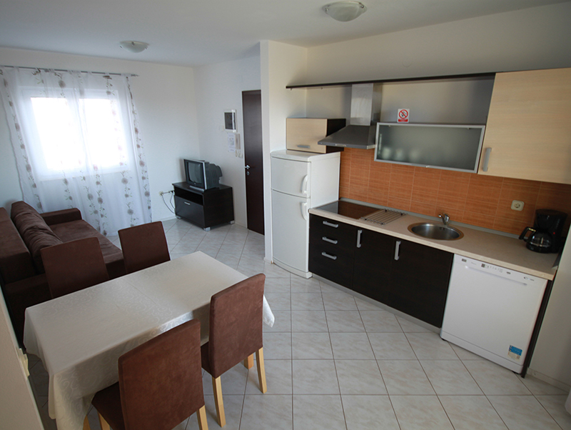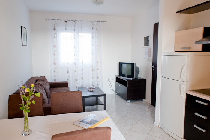| The “Agava” apartment is a two-room apartment on the first floor. You will enjoy a panoramic sea view from a terrace/loggia and from a living room. You will have one bedroom with 1 double bed (2 x 80 cm, length 200 cm), a living/dining room with a kitchen (an electric 4-plate cooker, a refrigerator, a dishwasher, a coffee machine ), a couch/sofa 160x200cm of additional sleeping space, an air-conditioner, SAT/TV, a bathroom (WC/bidet/shower), and an internet wireless connection. A covered terrace/loggia (6m2) with terrace furniture. The tourist fee, use of air-conditioner, internet, bed linen, towels, tablecloth and final apartment cleaning are all included in the renting price. |