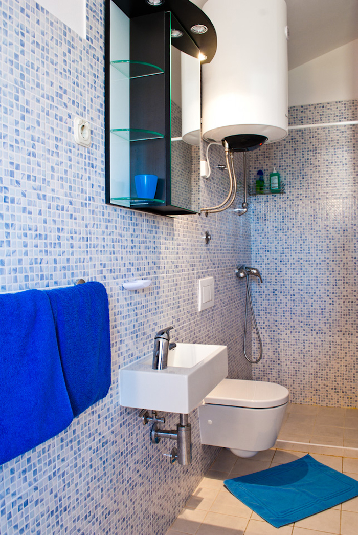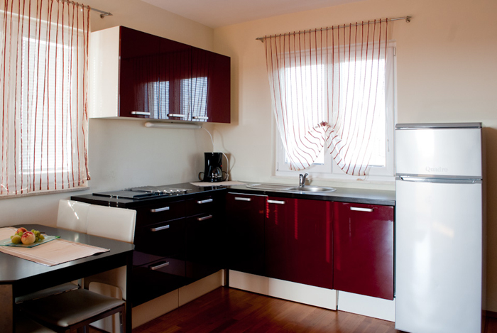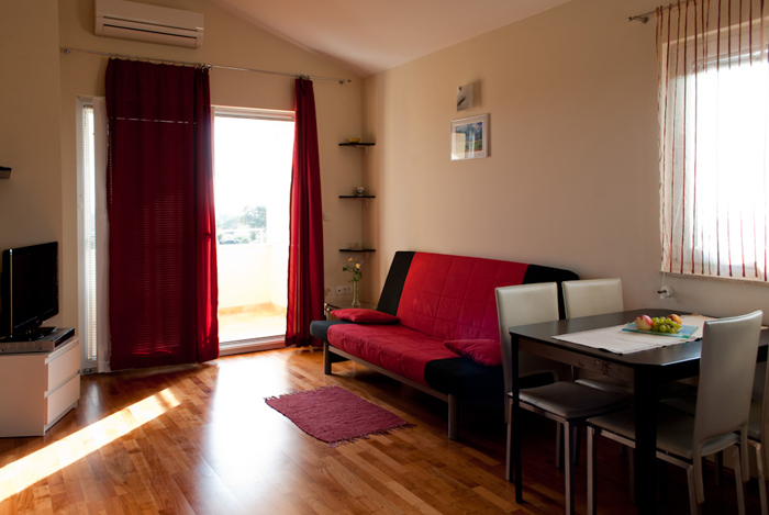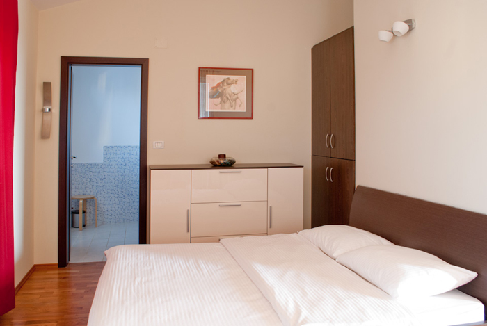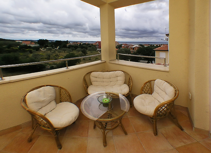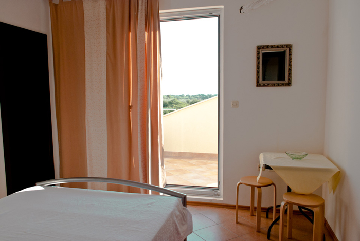 | The “Alan” apartment on the second floor is our penthouse apartment which gives you privacy. You will enjoy a wonderful view of the sea and the Brionian Islands. The “Alan” apartment is an air-conditioned studio-apartment with a bed (160x200cm), a contemporary kitchen (an electric 4-plate cooker, a refrigerator, a dishwasher, a coffee machine, a microwave ), a couch/sofa, a bathroom (WC/shower), SAT/TV, and a wireless connection. A covered terrace with a rattan settee will be your place for relaxing or watching sunsets. Next door you will have a separate room (bed 140x200 cm), with its own bathroom (WC/shower) and an open terrace, ideal for sunbathing in privacy or practicing yoga while the sun is rising. The tourist fee, use of air-conditioner, internet, bed linen, towels, tablecloth and final apartment cleaning all are included in the renting price. |